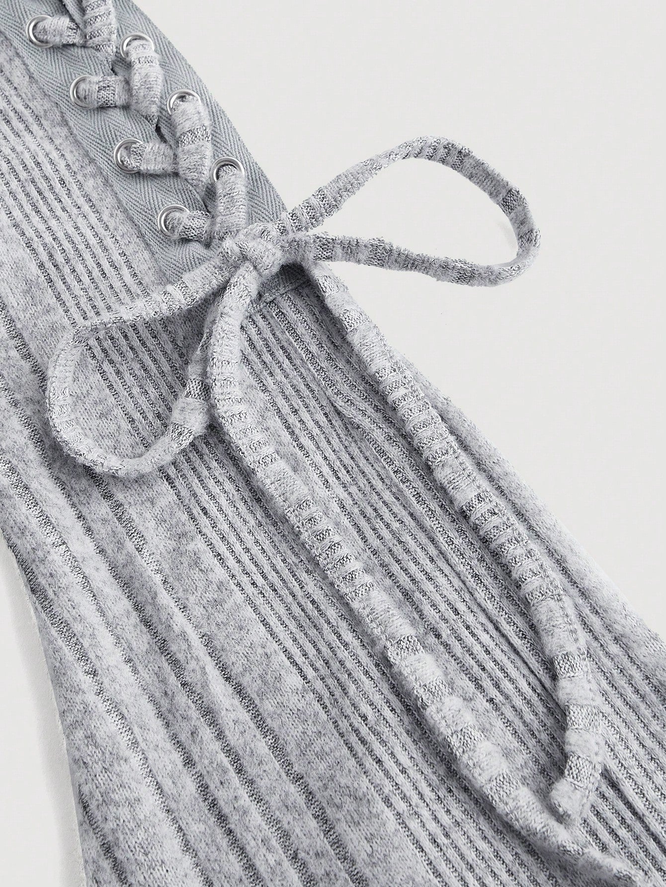 SHEIN MOD Camiseta de manga larga con cuello redondo acanalado y lazo, de felpa para mujer para otoño e invierno
