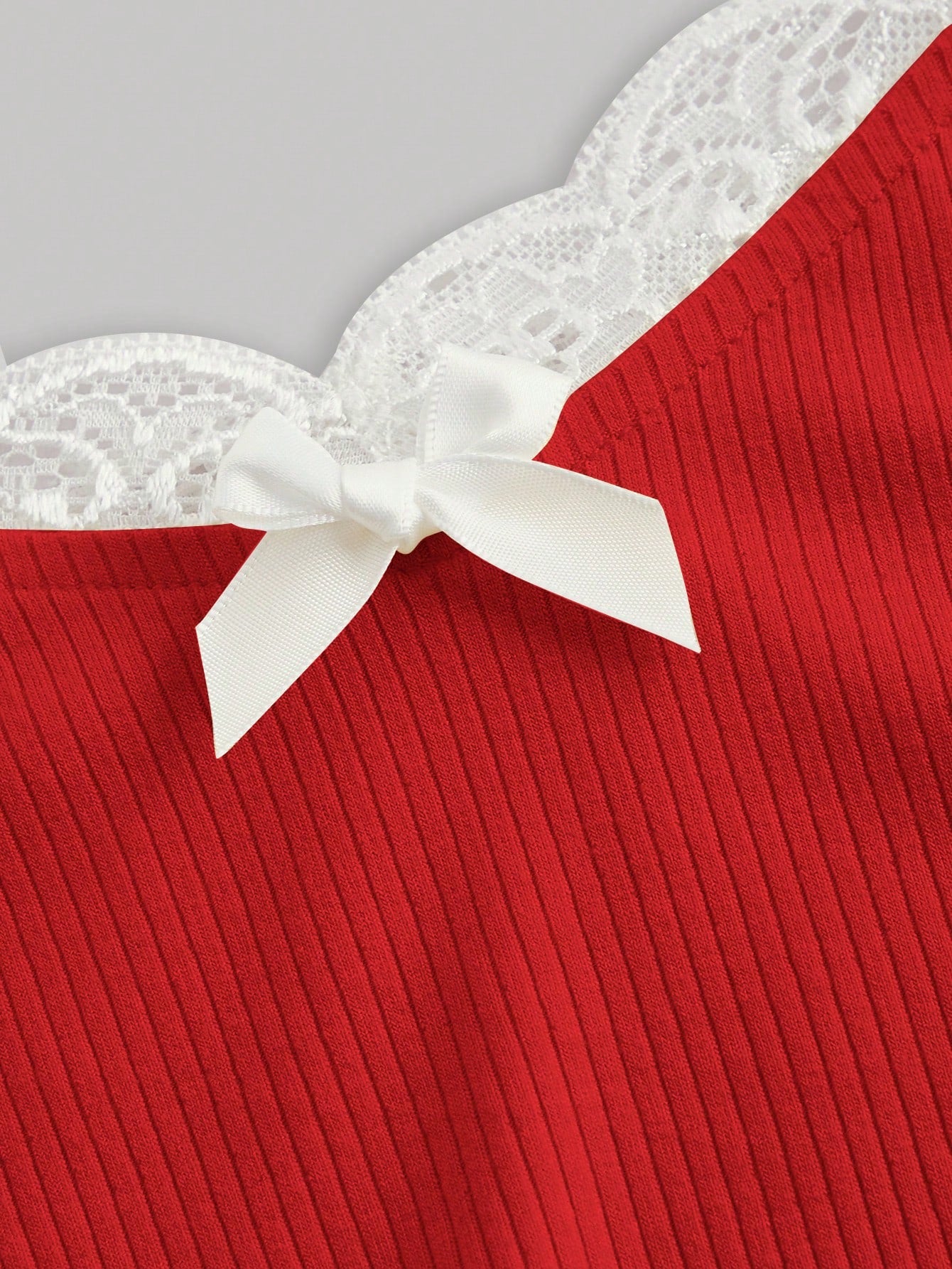 SHEIN MOD Camiseta para mujer con ribete de encaje de primavera y cuello halter con lazo
