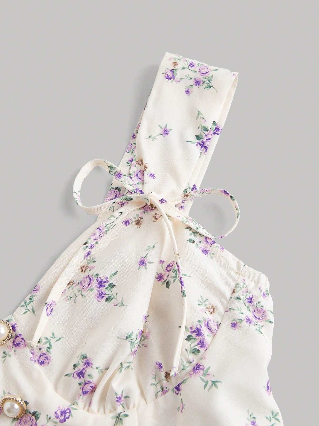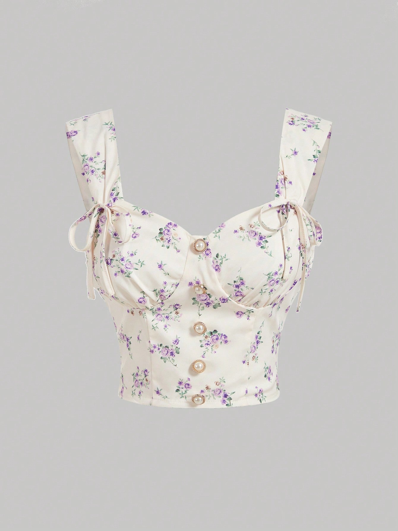 SHEIN MOD Camiseta sin mangas corta impresa dulce y ajustada para mujer
