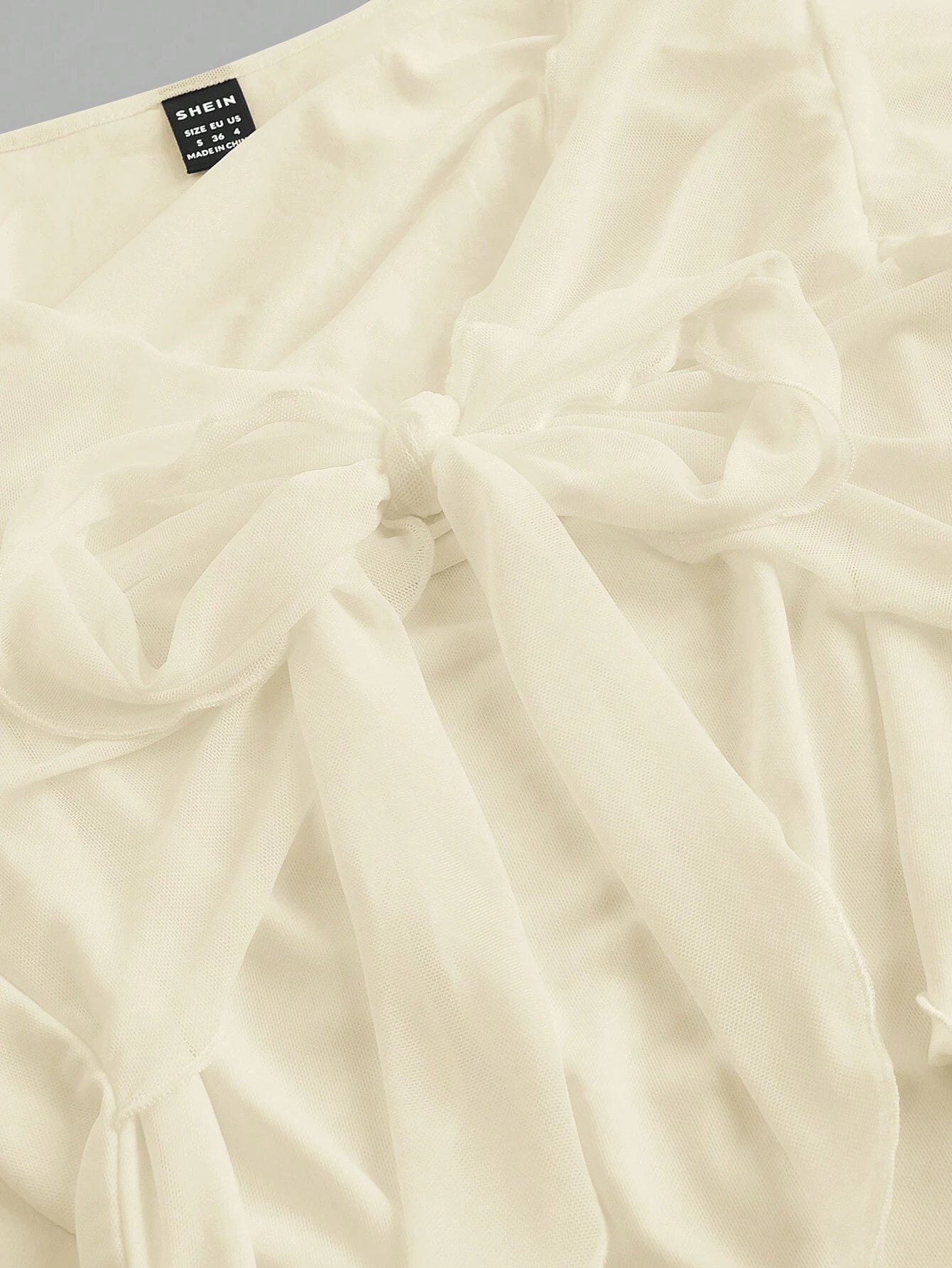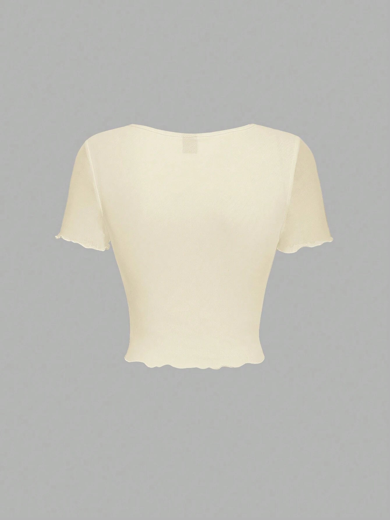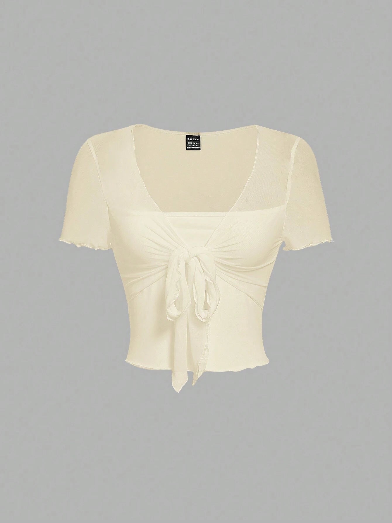 SHEIN MOD Camiseta verde vintage con borde de lechuga y lazo delantero