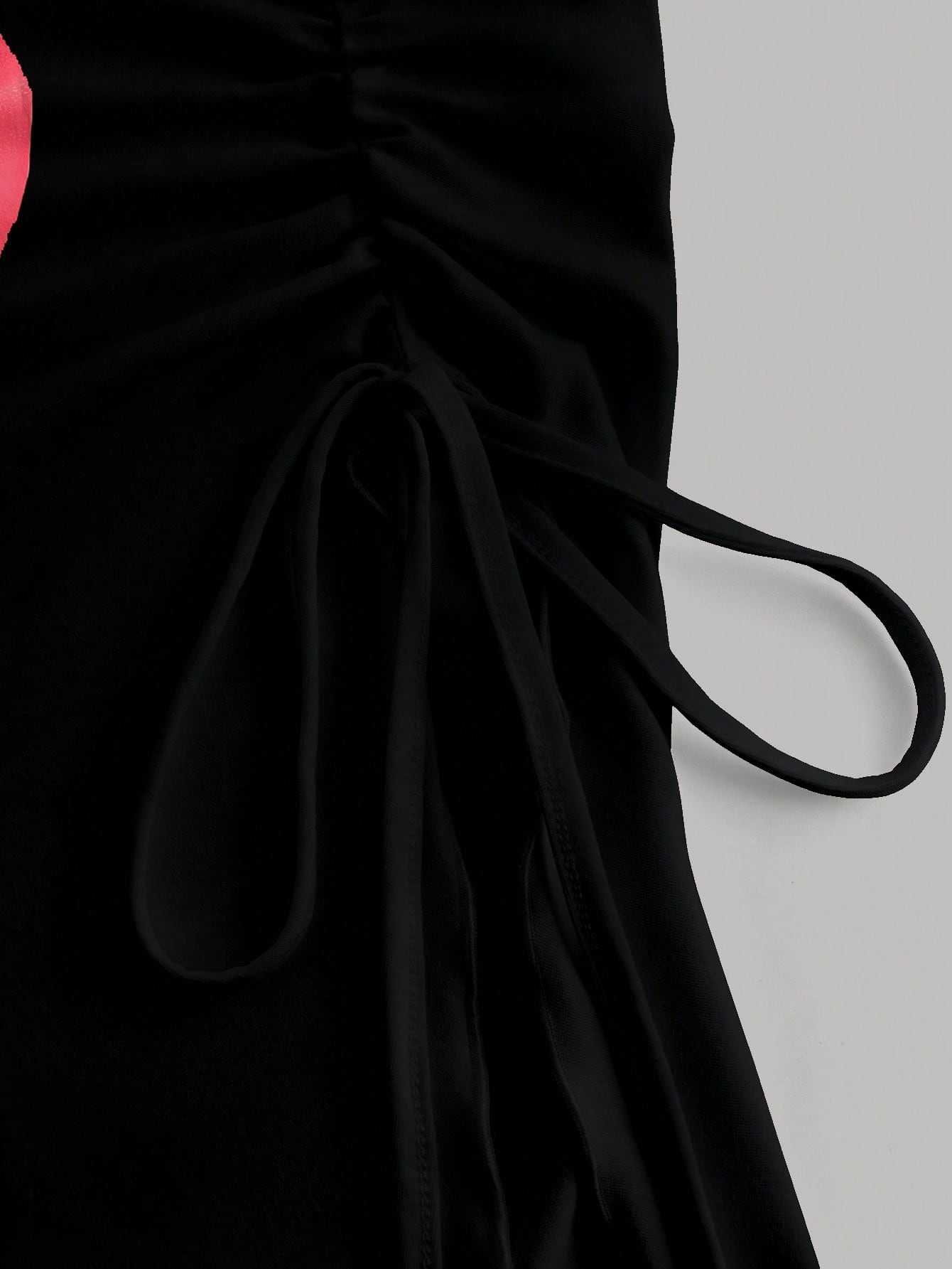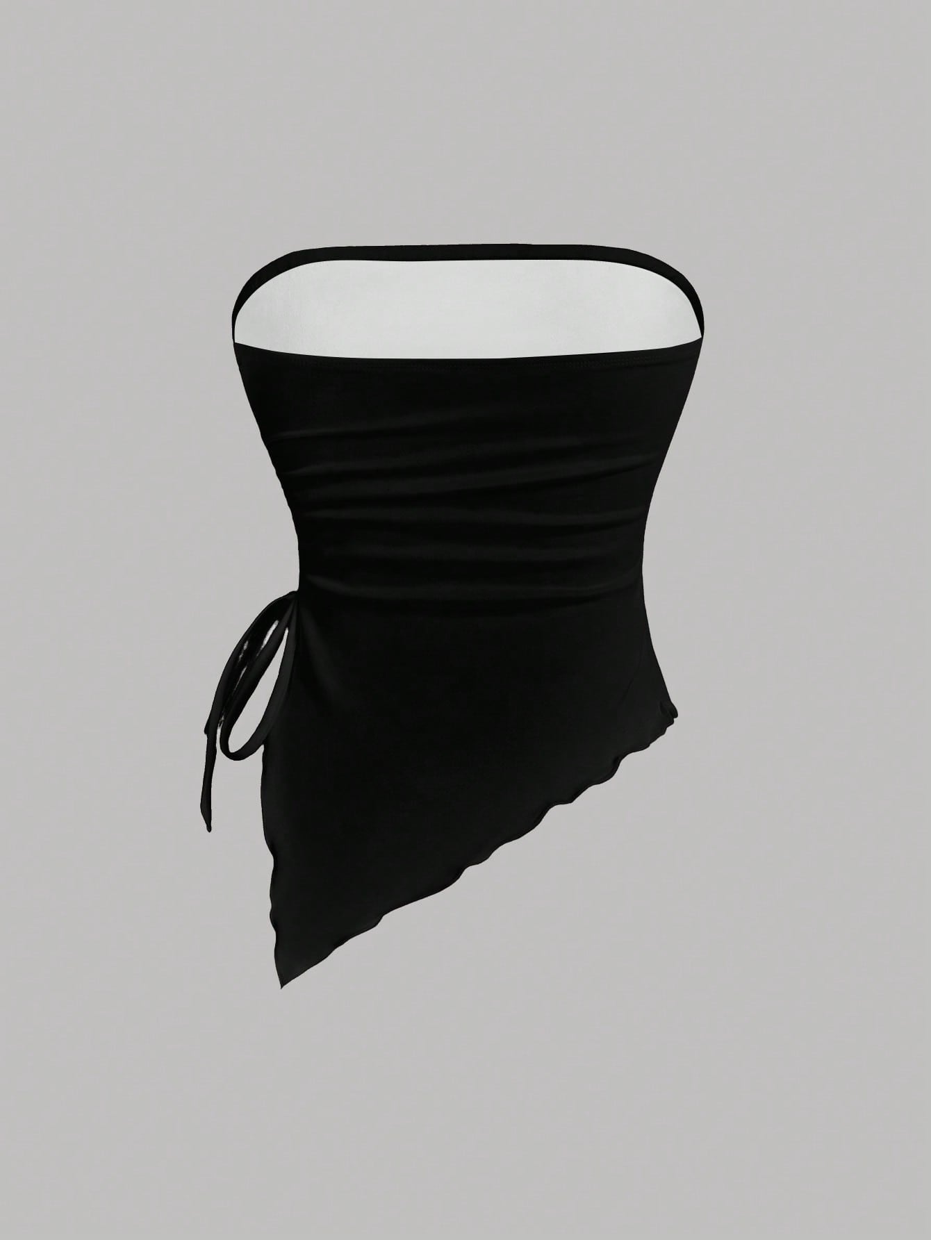 SHEIN MOD Top bandeau ajustado con estampado floral asimétrico, apropiado para el verano, vacaciones, elegante, estampado de flores de hibisco, estampado de Hawai
