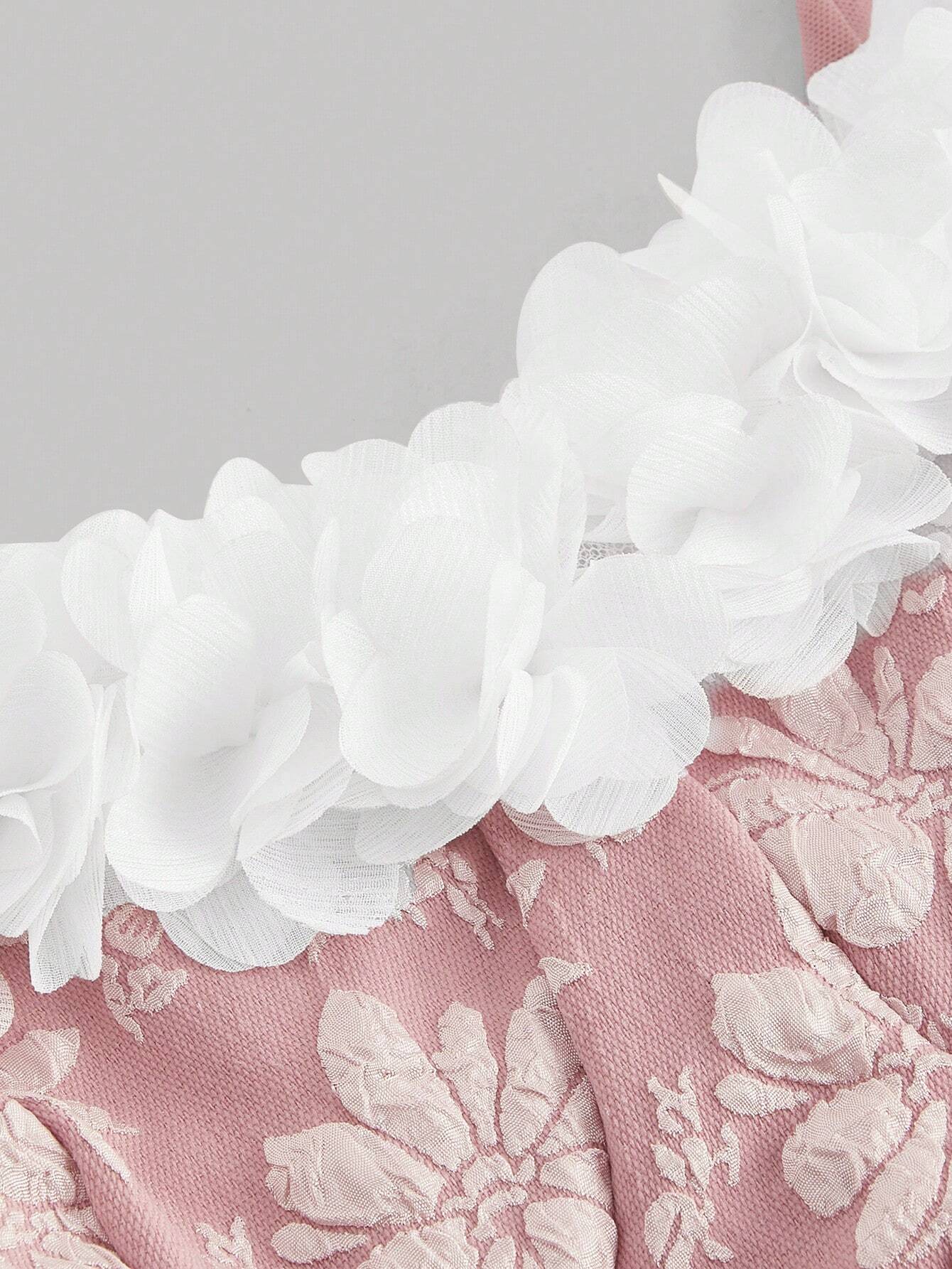 SHEIN MOD Top Corto Estilo Cami Con Dobladillo Con Volantes Decorado Con Flores Y Apliques