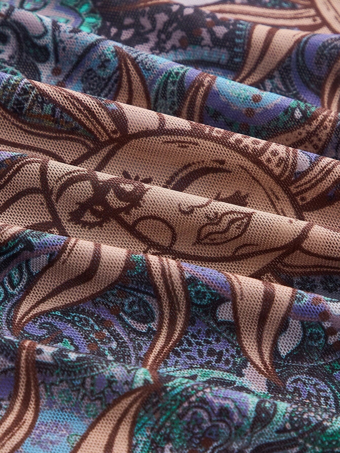 SHEIN MOD Top crop con estampado de sol y luna ribete en forma de lechuga de cuello alto
