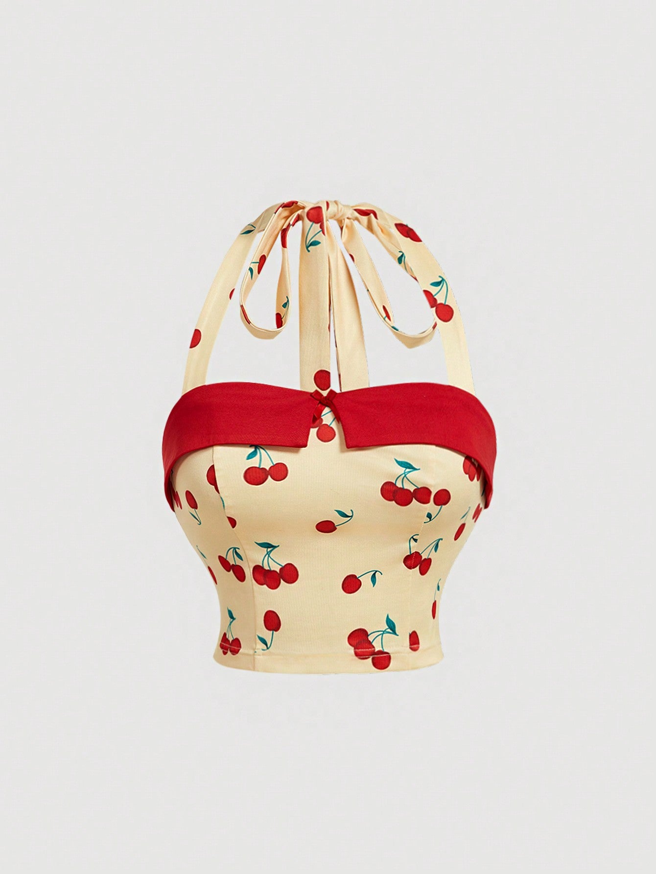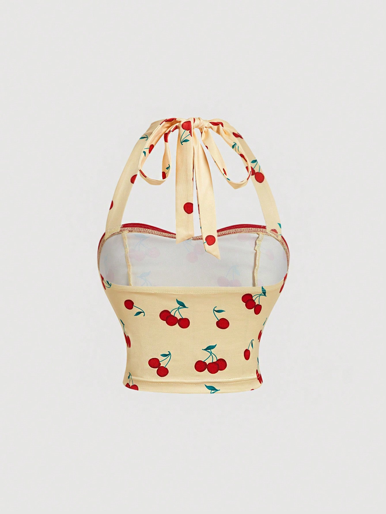 SHEIN MOD Top de verano halter amarillo con estampado de cereza lindo para mujeres