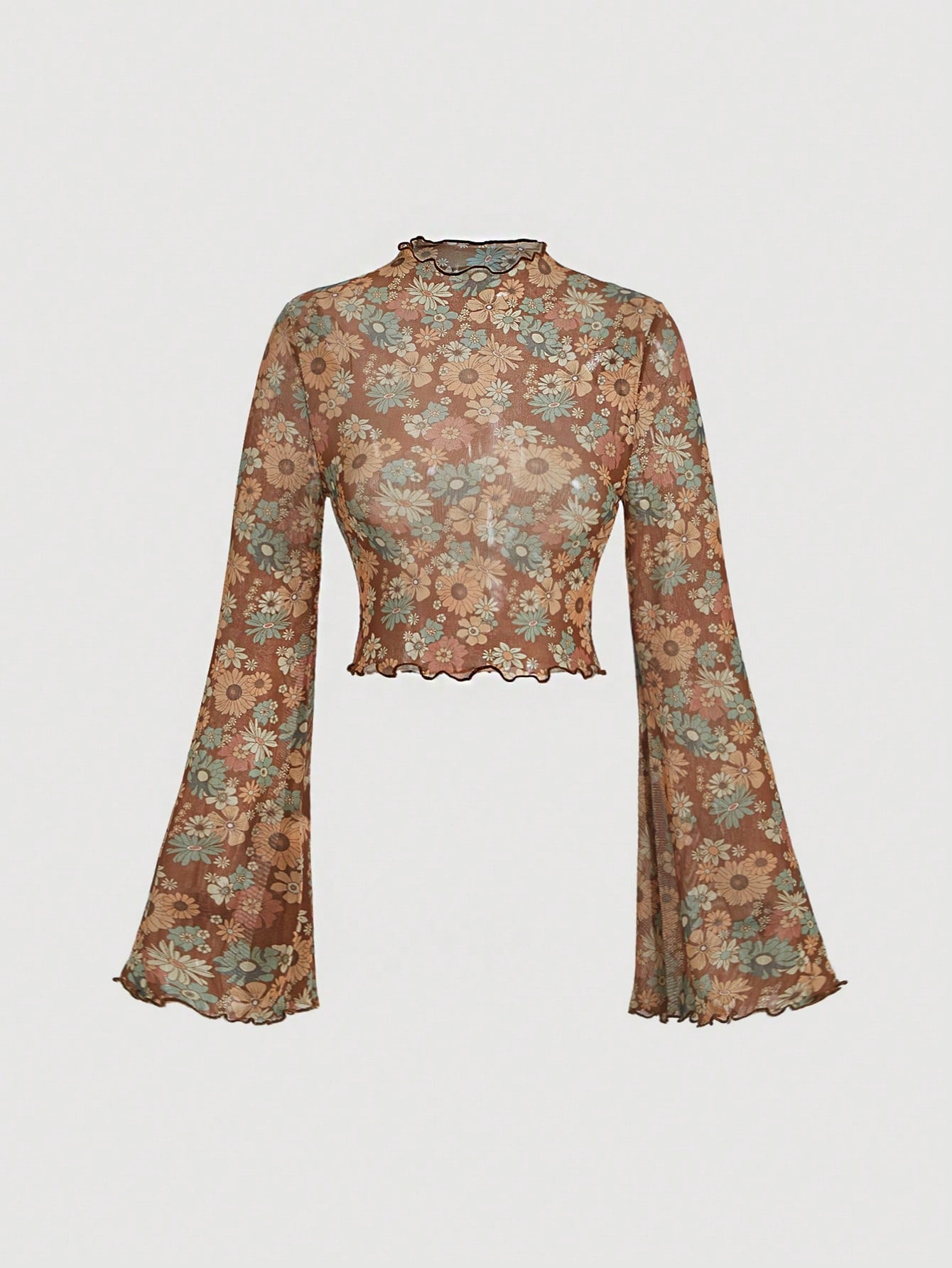 SHEIN MOD Tops de mujeres Acaracolado Transparente Floral todo estampado Casual