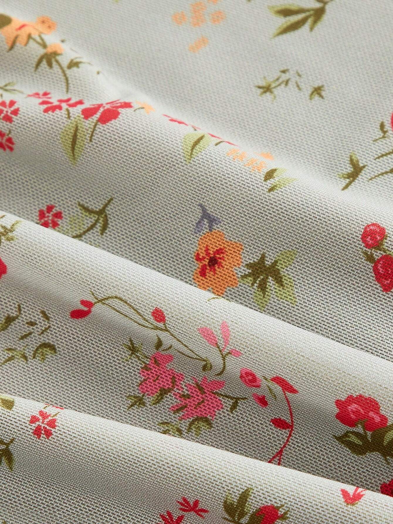 SHEIN MOD Vestido casual para mujer con cuello redondo y pliegues en el pecho con estampado vintage de flores