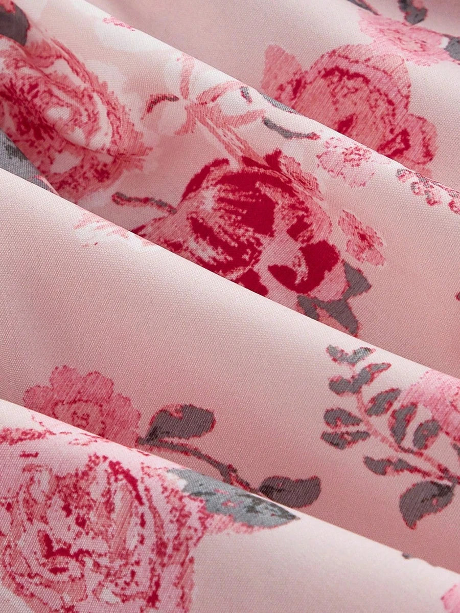 SHEIN MOD Vestido de flores para señoras con estilo de vacaciones, dobladillo y lazos de hombro con volantes, verano
