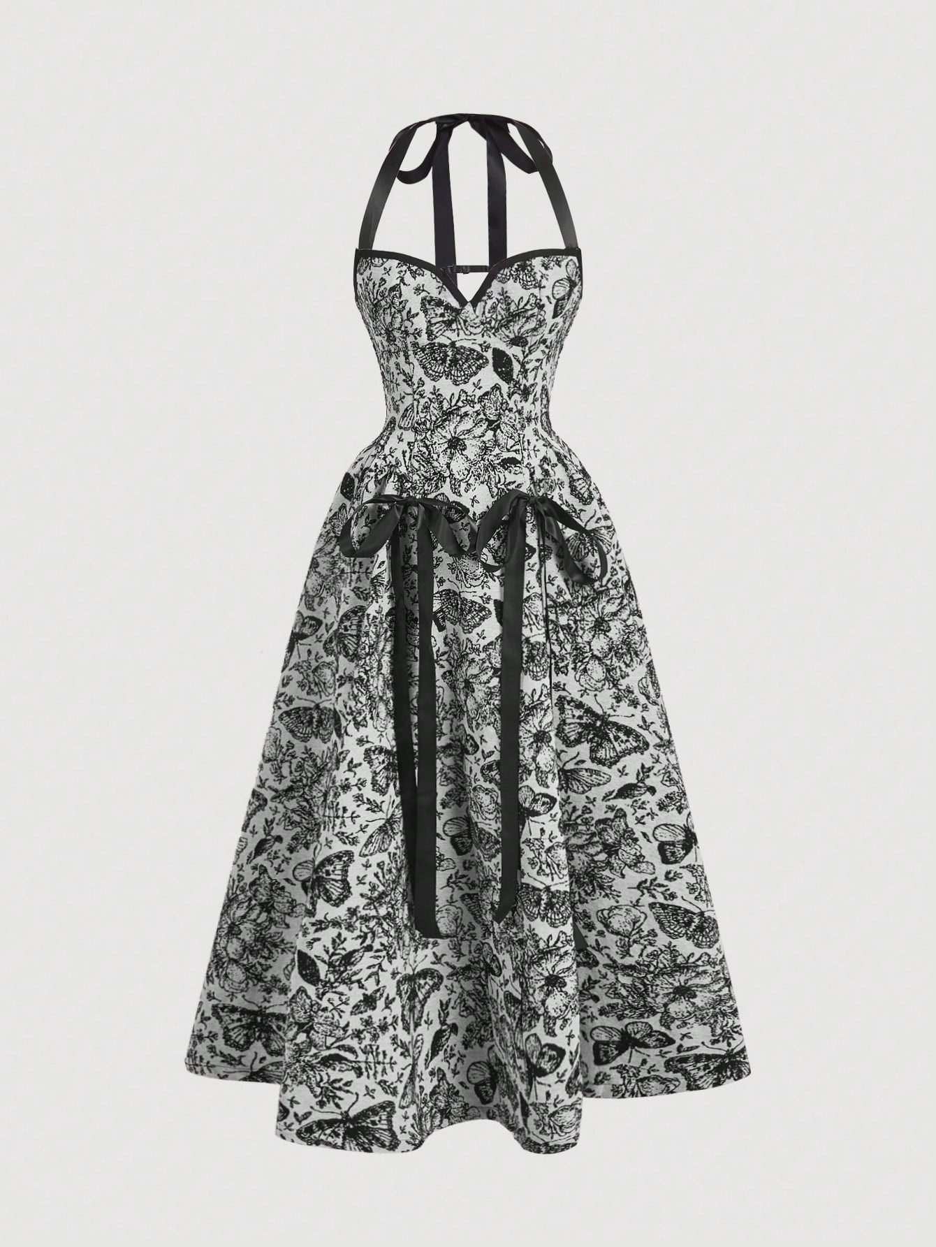 SHEIN MOD Vestido romántico para mujer con tirantes de malla con diseño de mariposa negra, vestido gótico, vestido negro de graduación, vestido elegante, vestido de mujer, vestidos elegantes de mujer, vestidos de mujer m