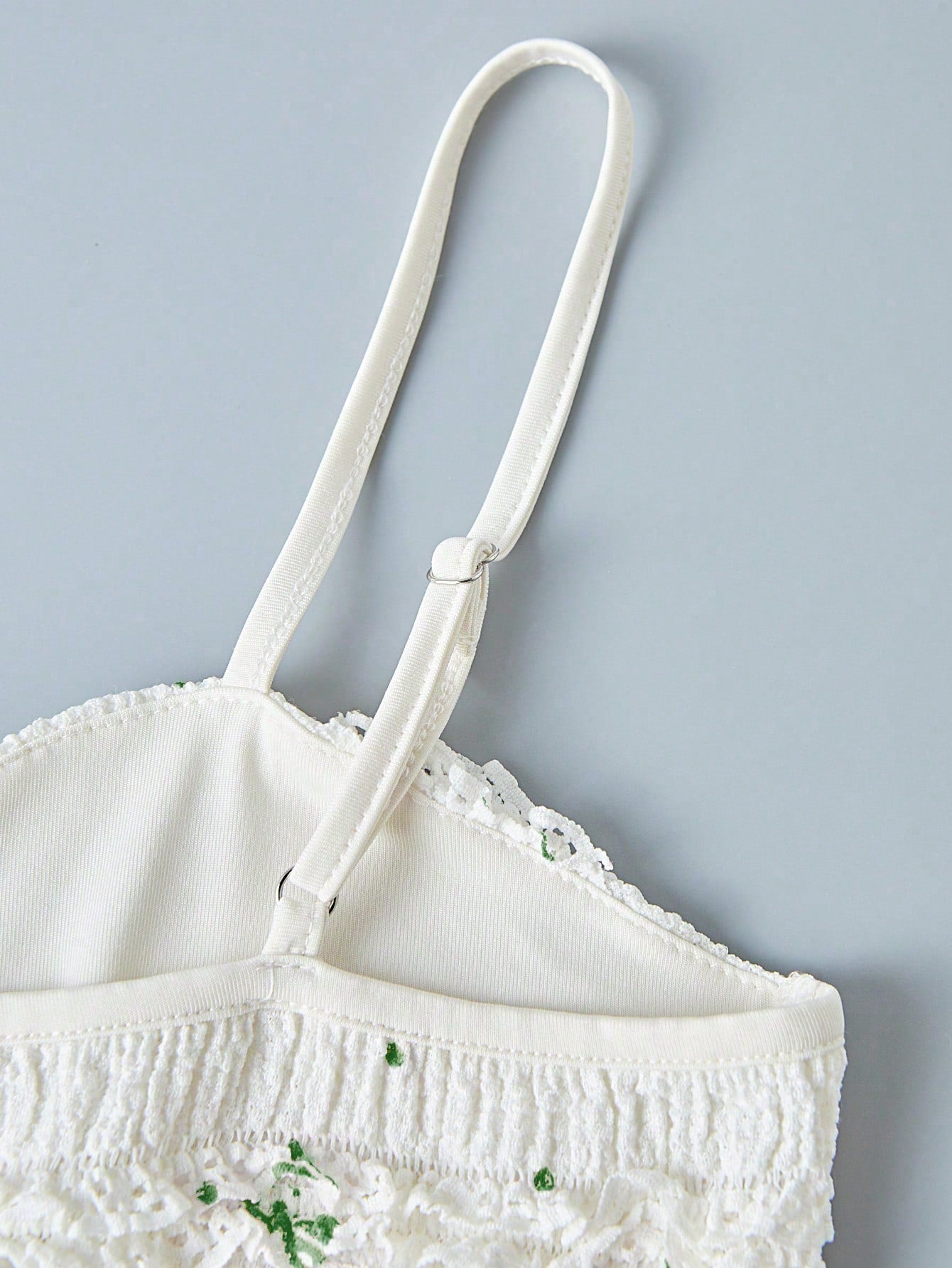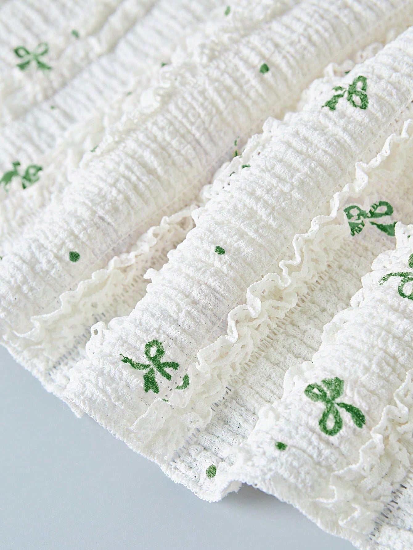 SHEIN Relaxiva Camisola con estampado de mariposa, plisada y con volantes en el bajo para mujer
