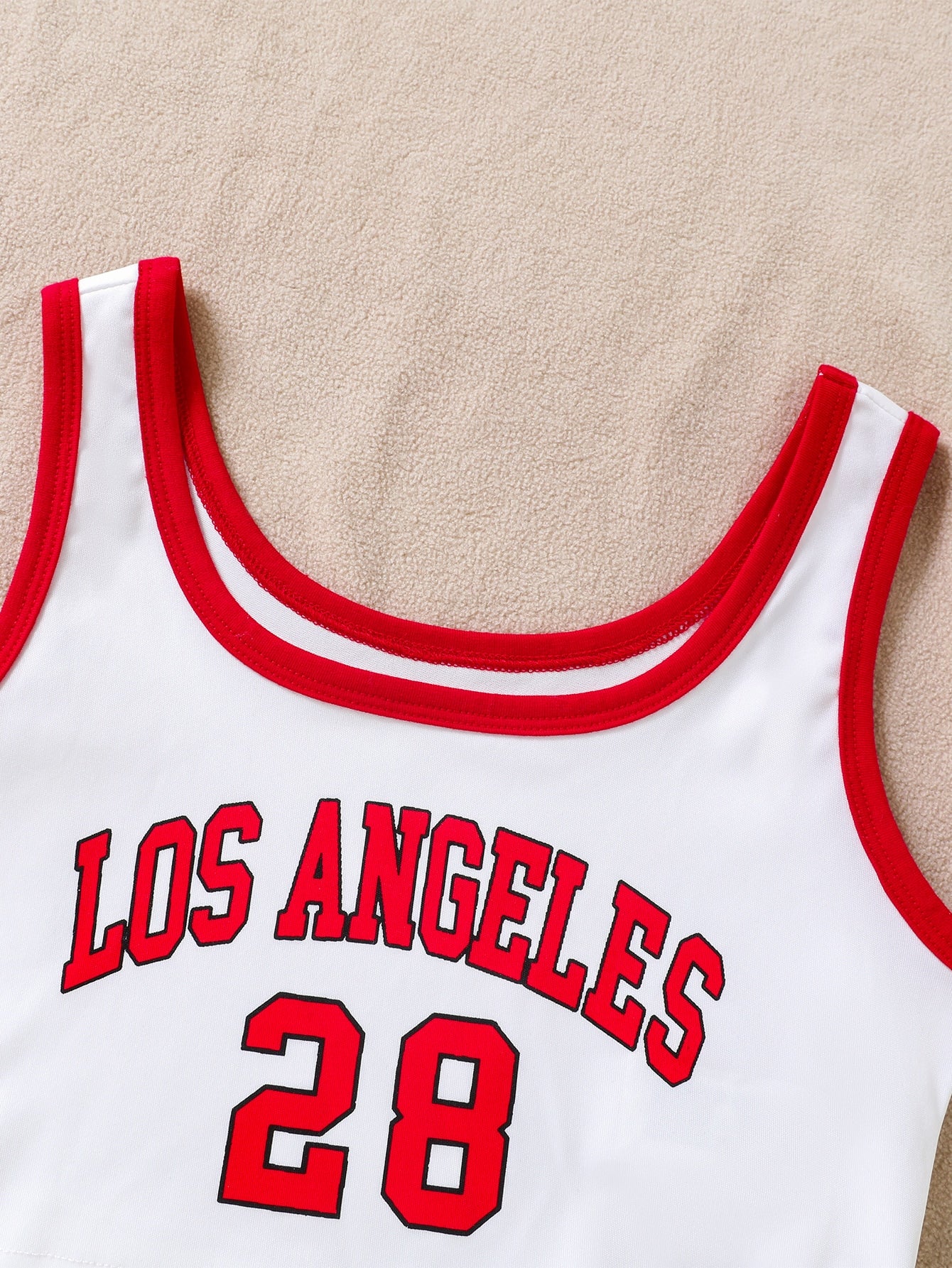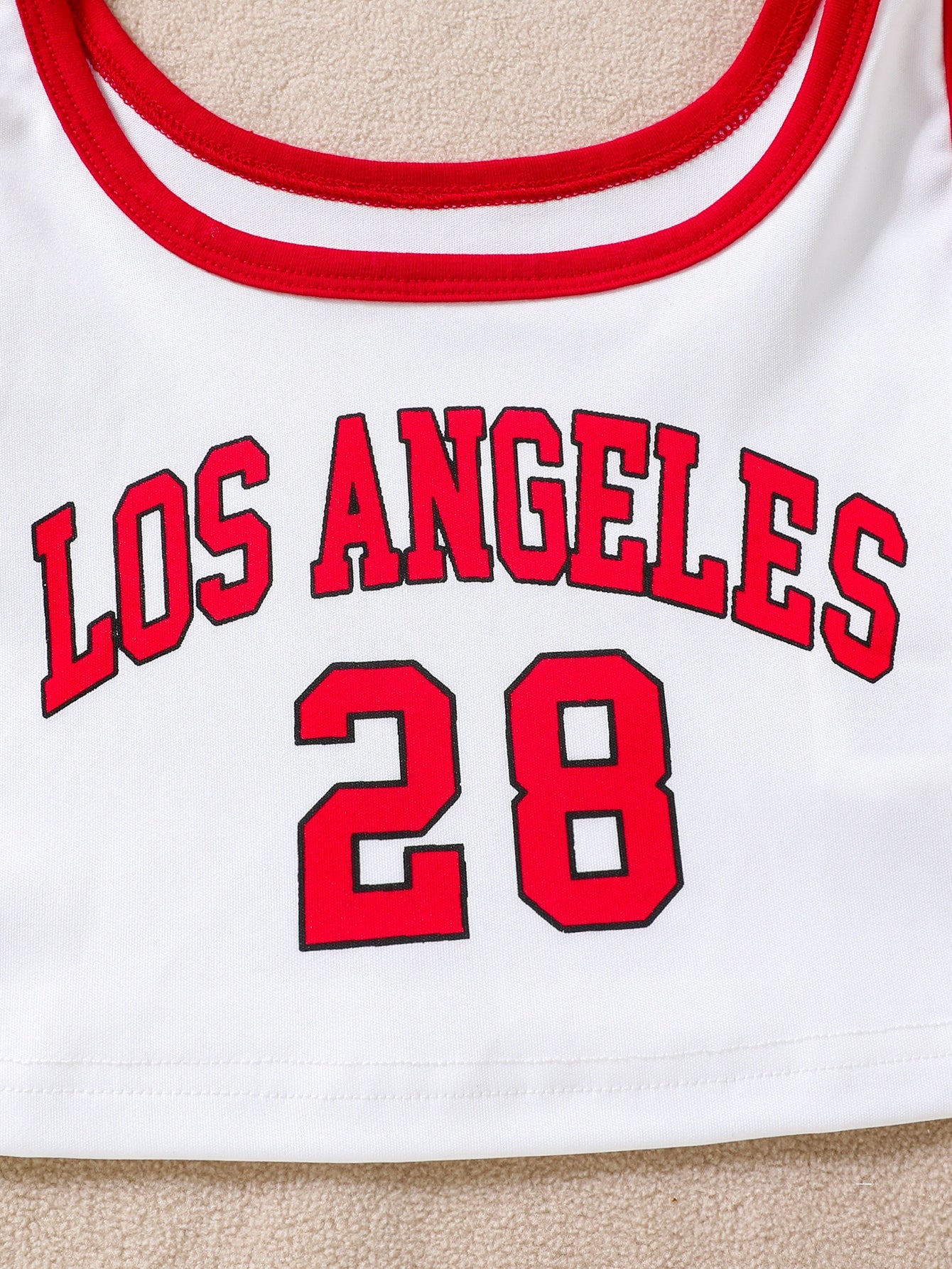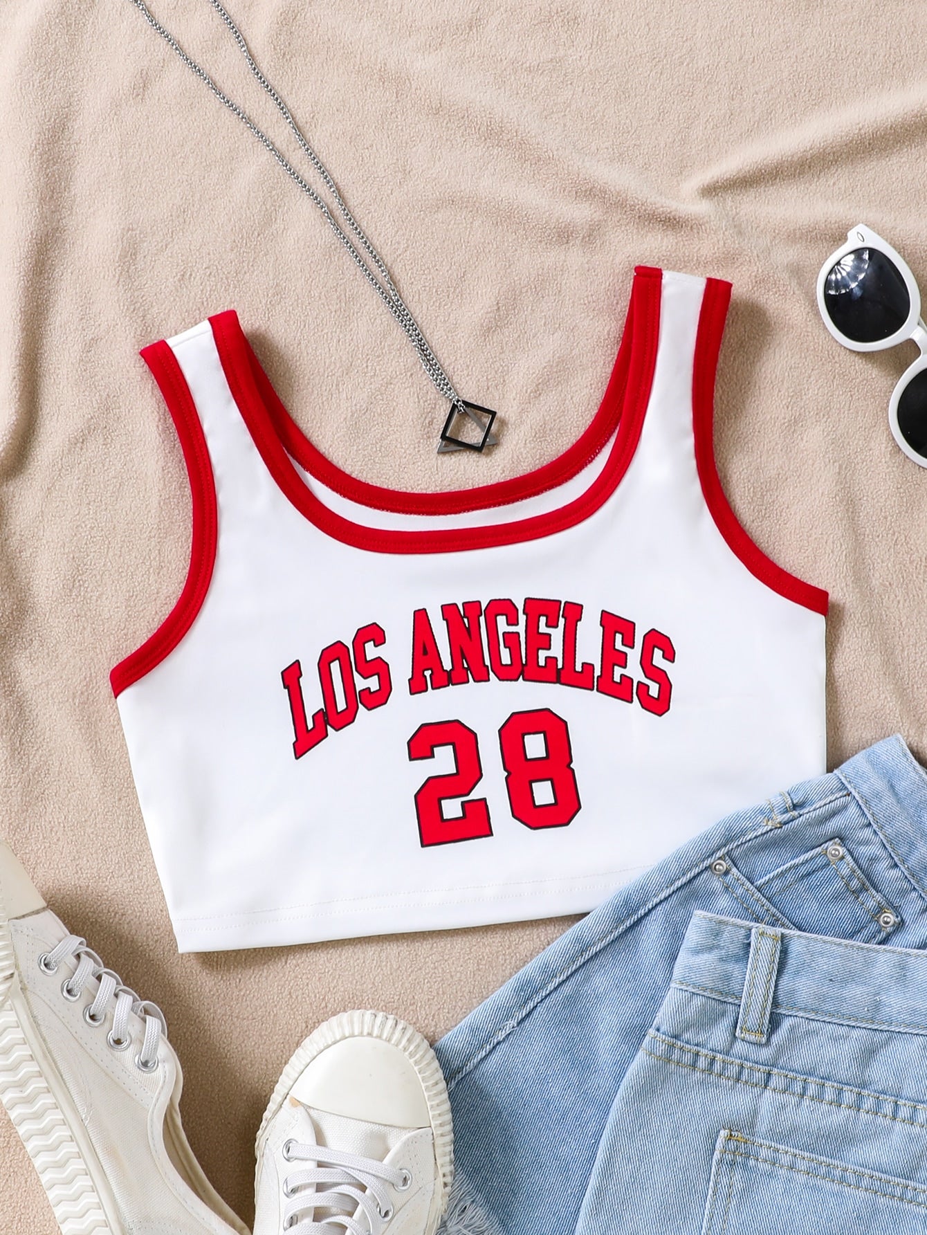 SHEIN Streecool Kids Chicas Top tank crop con estampado de letra unido en contraste