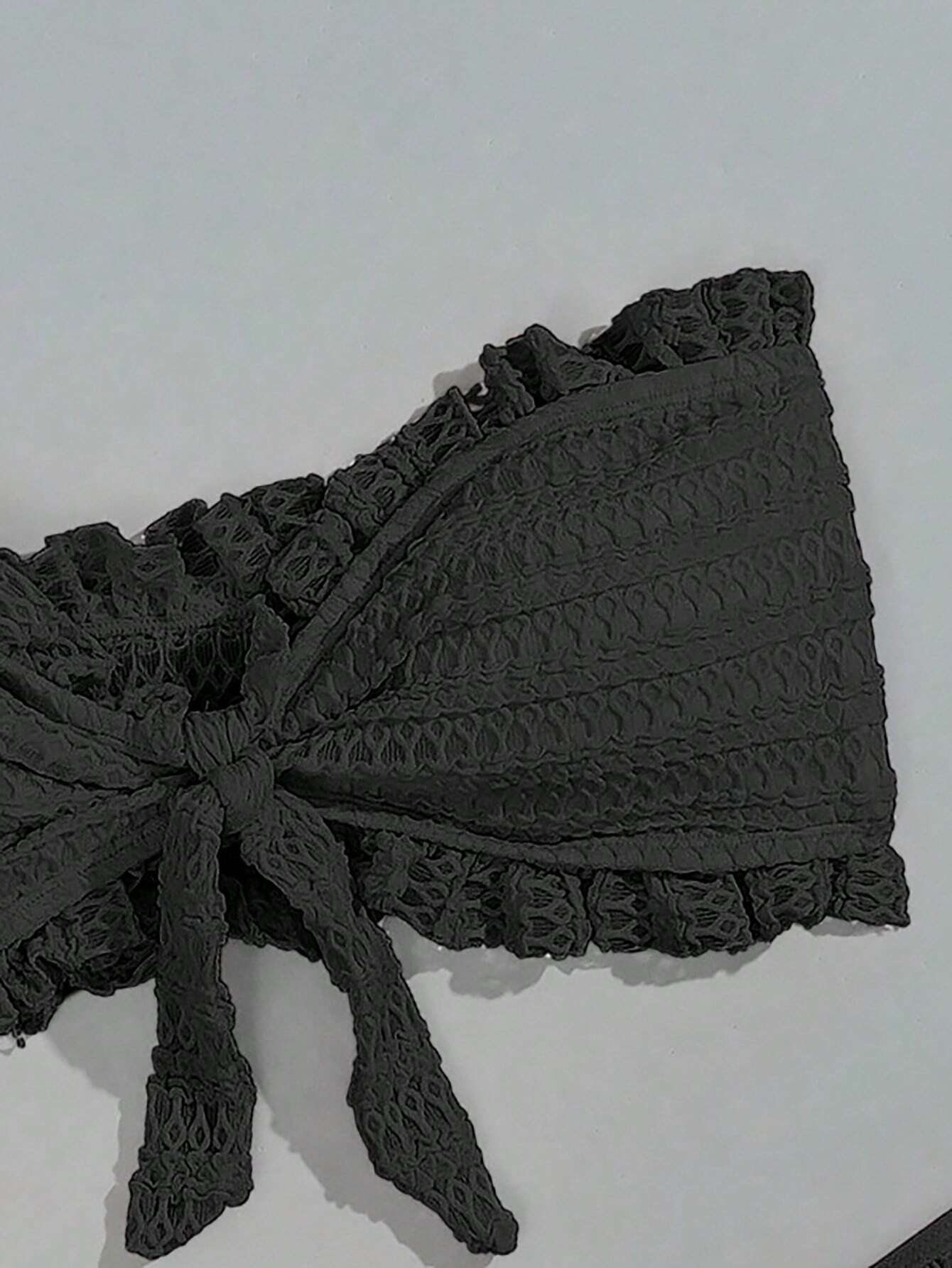 SHEIN Swim Conjunto de bikini sin tirantes y solido de verano con ribete de volantes para mujeres en la playa