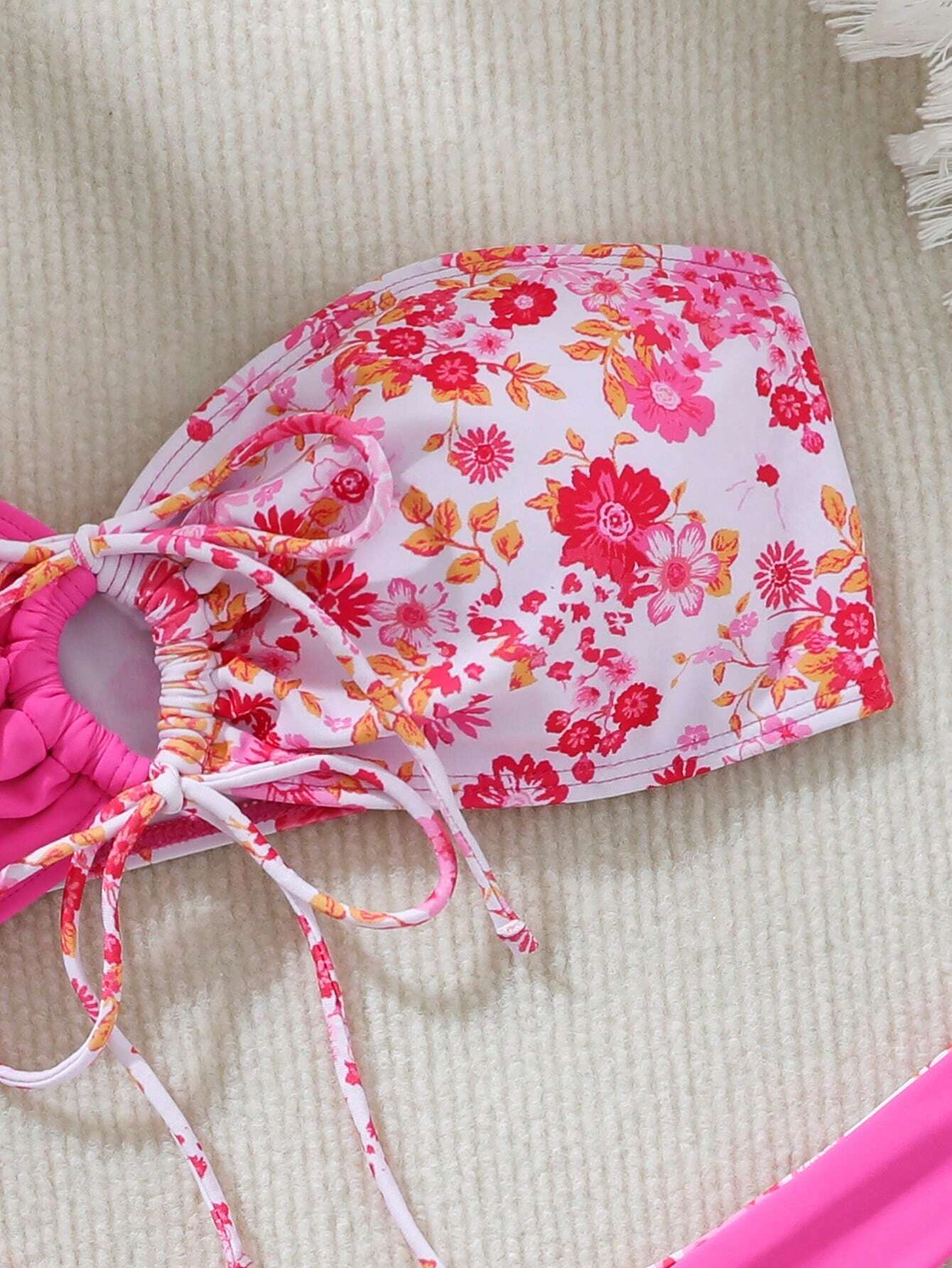 SHEIN Swim Mod Conjunto de bikini para mujer con bandeau fruncido sin tirantes con sujetador y conjunto de bikini con atadura en la cintura para vacaciones de verano en la playa