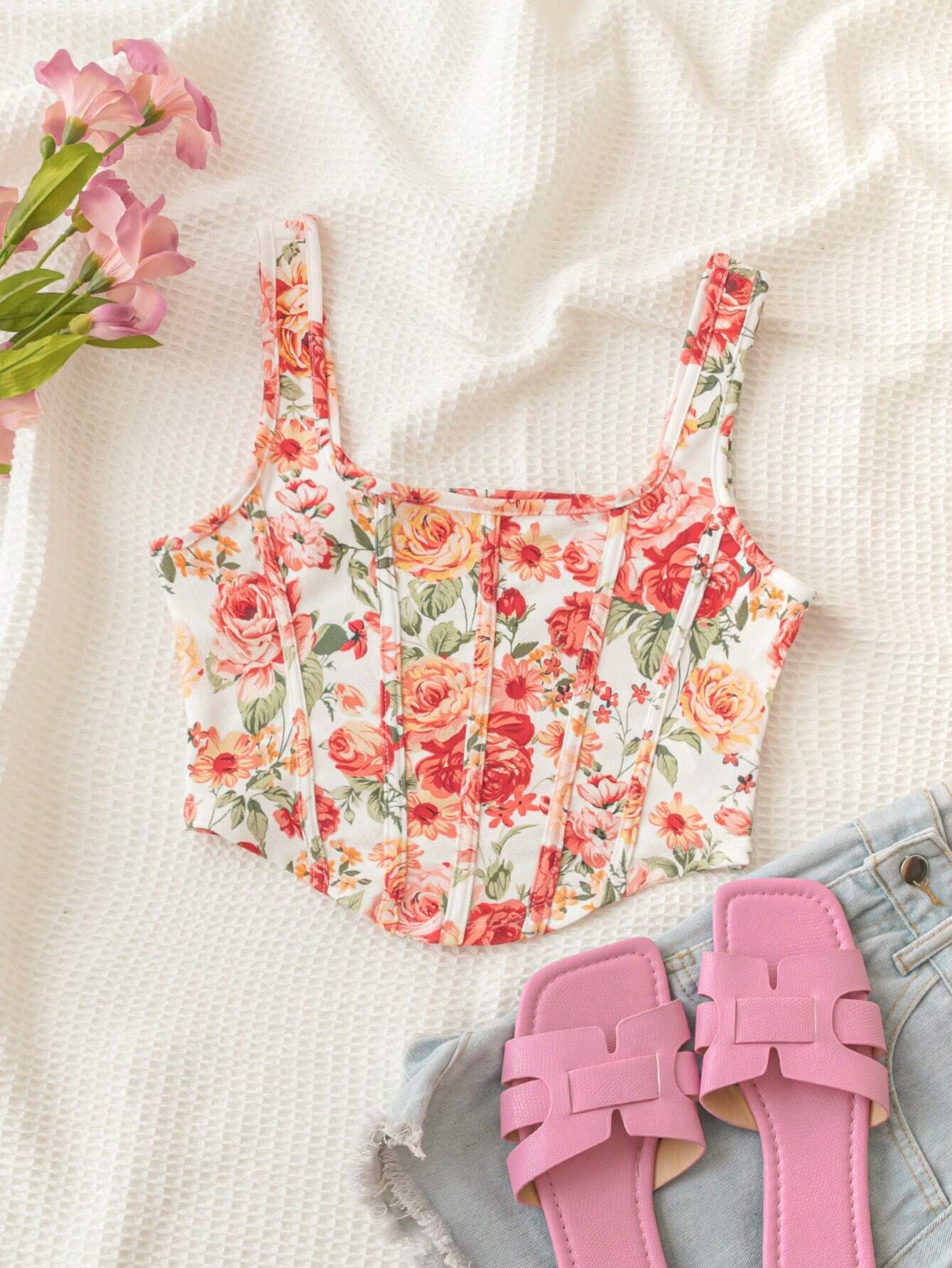 SHEIN VCAY Top De Tanque De Vacaciones Con Dobladillo Asimétrico Y Estampado Floral