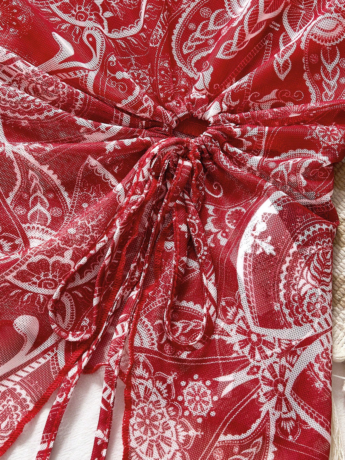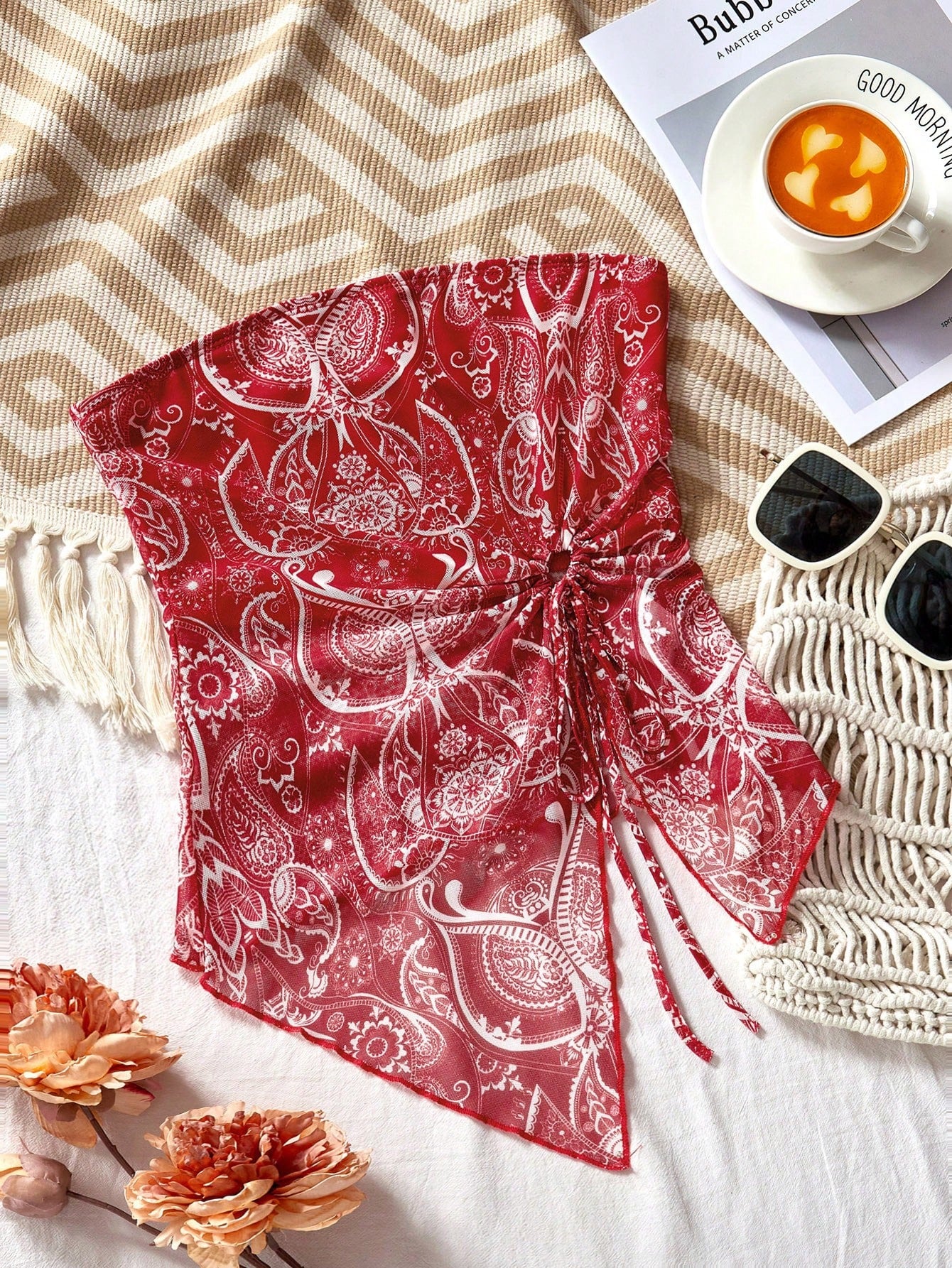 SHEIN VCAY Top de tubo de malla tejida con estampado de paisley y dobladillo asimétrico para mujer