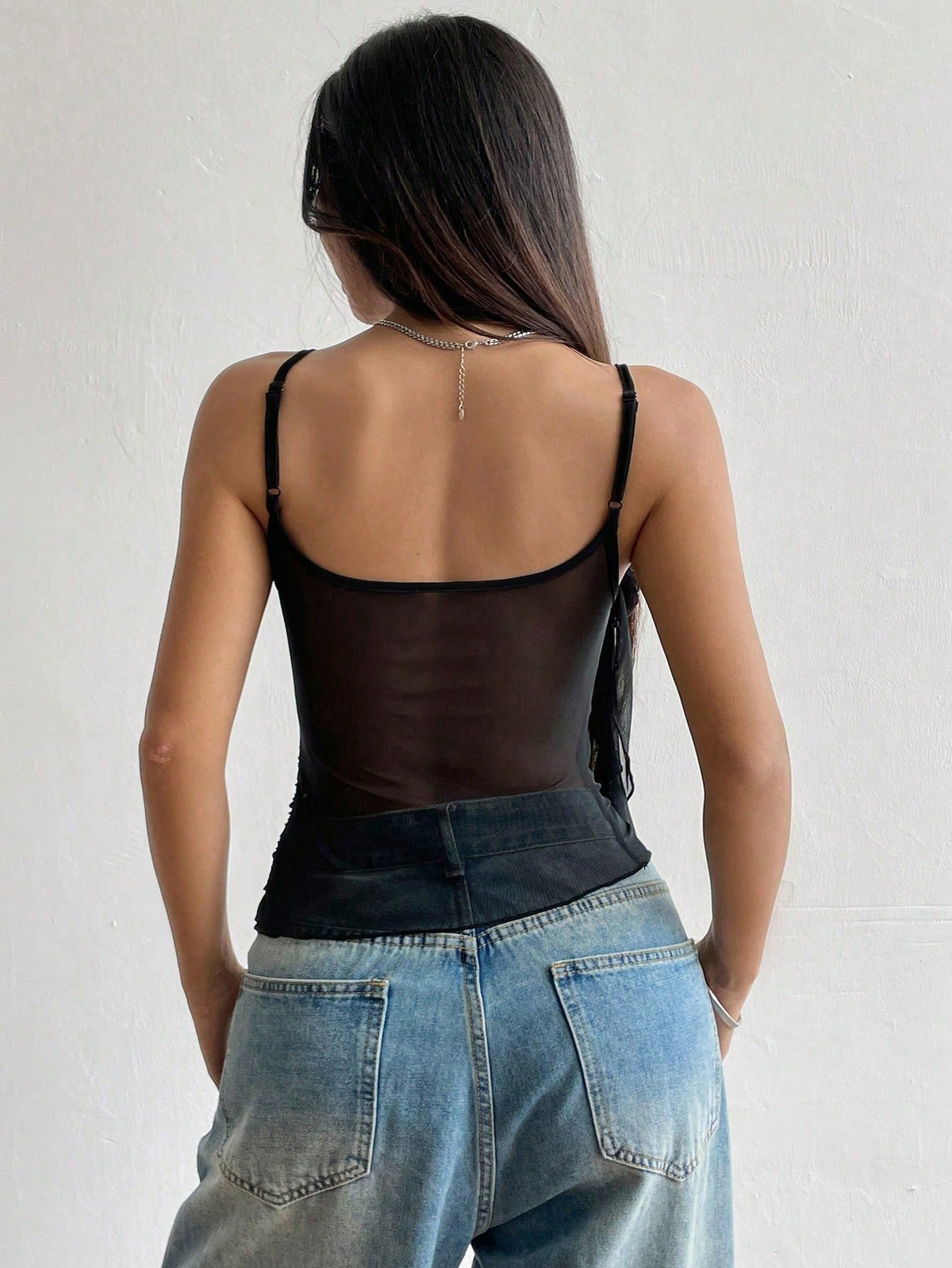 SHEIN X KAREN BARRERA SHEIN Unity Top de camisola transparente de malla floral de unicolor para mujer en verano