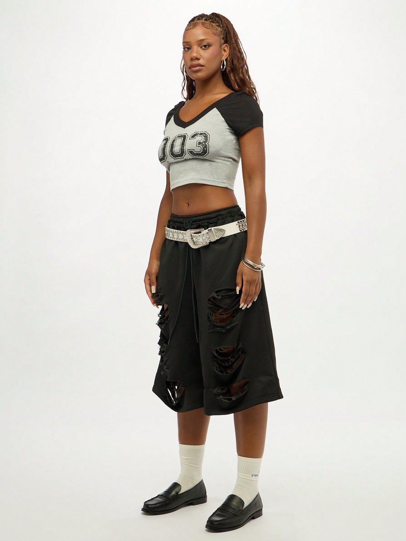 SUMWON WOMEN Camiseta corta de estilo universitario para bebé con estampado gráfico urbano de números, cuello en V, mangas raglán de contraste y manga corta básica para uso casual en verano