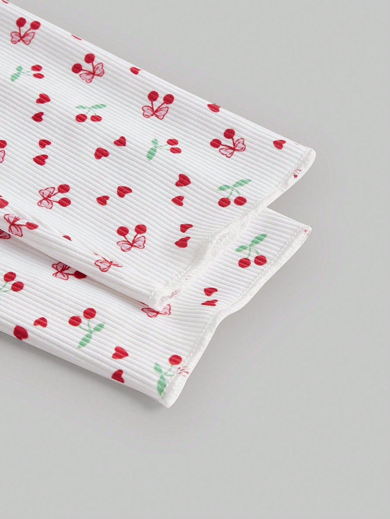 Sweetness Camiseta con estampado de cerezas y encaje en contraste