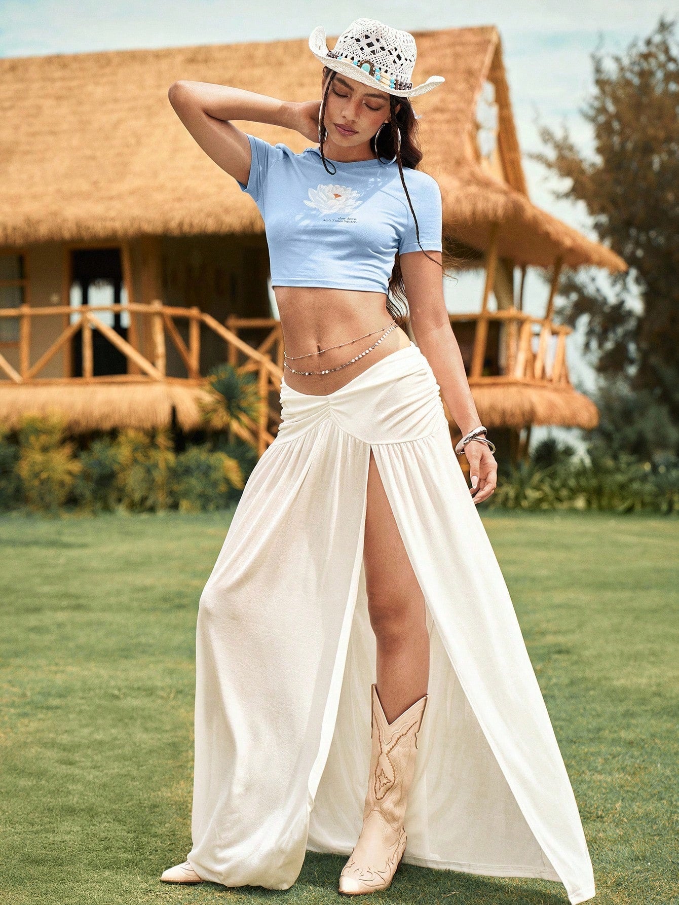 The White Lotus Camiseta de manga corta de cuello redondo ajustada con estampado floral para mujer