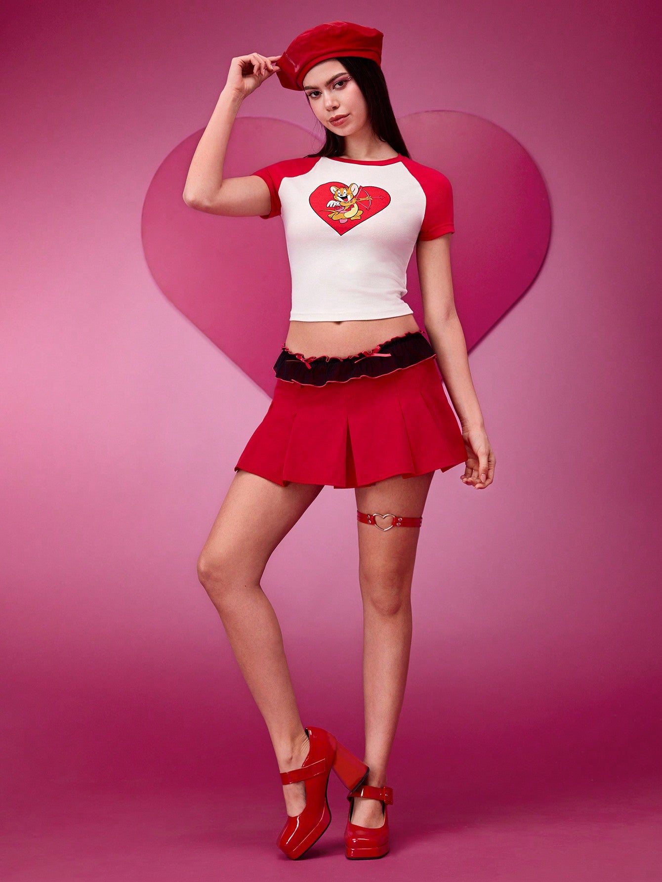 TOM & JERRY X SHEIN Camiseta de manga raglán con bloque de color y estampado de ratón de dibujos animados para mujer, verano