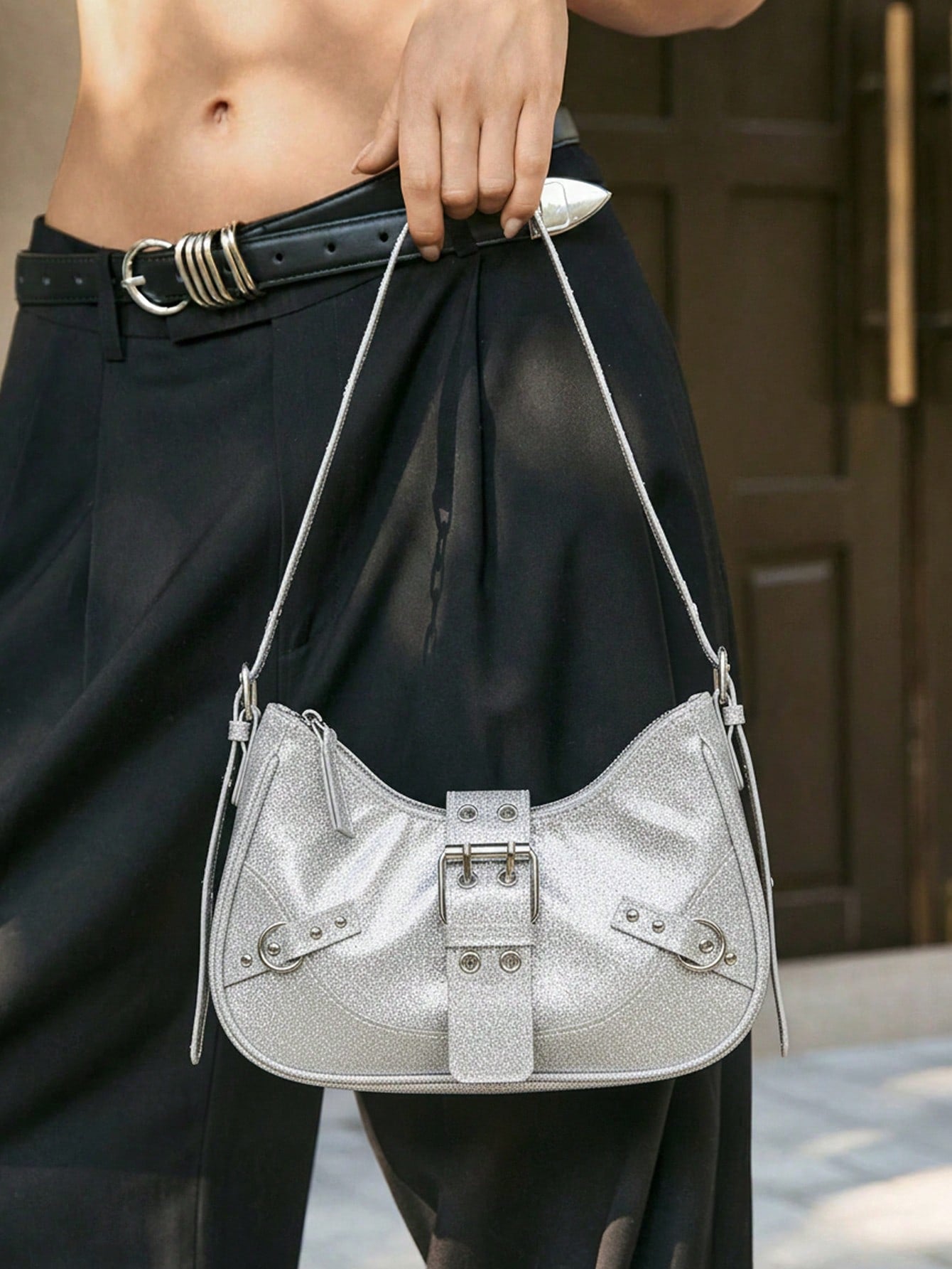 Viva Strut 1 pieza Bolso bandolera con decoración de remaches, estilo punk, ajustable, para mujeres y adolescentes, estilo Y2K